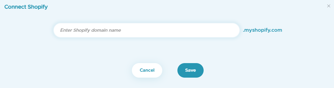 - Under the Shopify box, enter the shop address (exclude the http and myshopify.com portion)