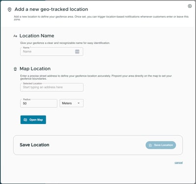 Use Live Geo-Tracking to send location-based notifications to your customers when they enter or leave a defined area. This guide walks you through setting up a geofence and creating a live campaign.