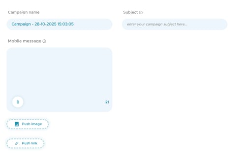 Fill in the subject and mobile message.