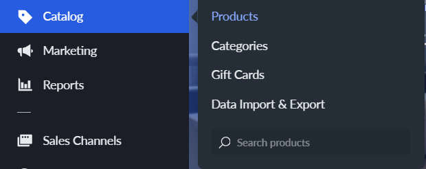- Going to the Lightspeed Ecwid, click on Catalog within the main menu on the right, then press on Products.